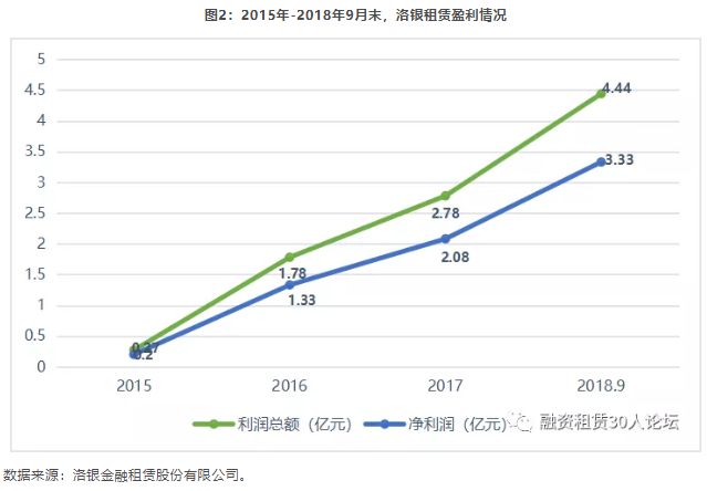 截至2018年9月末,洛银租赁资产总额为215.65亿元,较年初增长15.62%,应收融资租赁款210.95亿元,较年初增长16.55%;2018年1-9月,实现利润总额4.44亿元,净利润达3.33亿元。