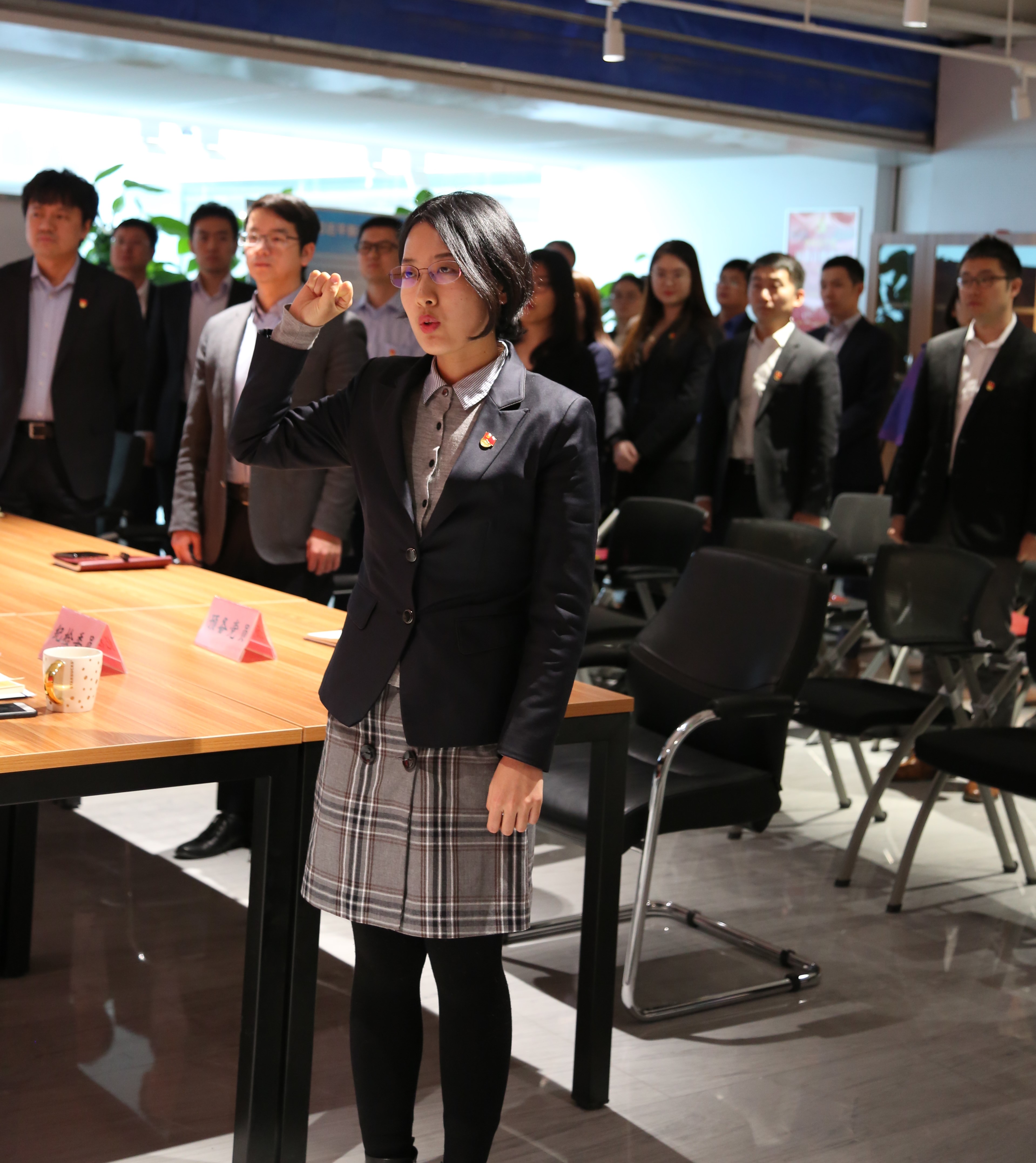 最后,按照党员发展程序,新接收的预备党员面对庄严的党旗郑重宣誓,全体党员一并重温入党誓词。